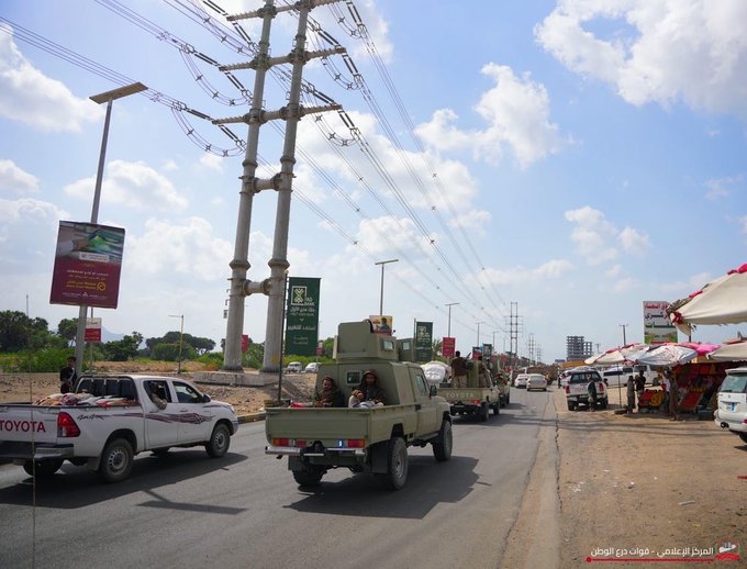 ونشر المركز صوراً تظهر وصول وانتشار اطقم تابعة لدرع الوطن في شوارع العاصمة عدن.