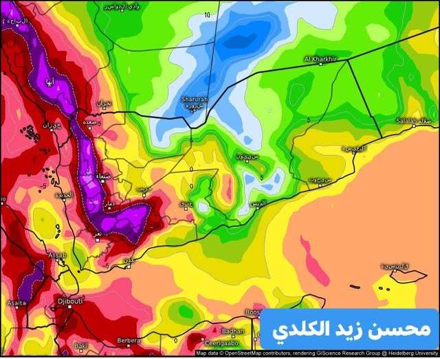 وبحسب التوقعات، تشمل الأمطار محافظات صنعاء وذمار وإب وتعز وريمة والمحويت وحجة وعمران وصعدة، إضافة إلى مناطق من الضالع والبيضاء ومأرب ولحج وبعض مناطق شبوة.
